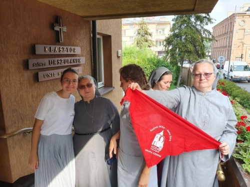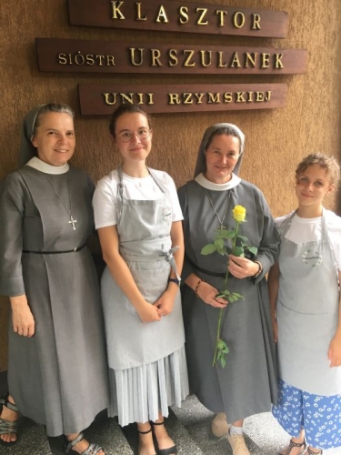 Sierpień jest wyjątkowym czasem pielgrzymek na Jasną Górę (autokarowych, rowerowych, motocyklowych, pieszych, a nawet konnych…) Urszulanki ze wspólnoty w Częstochowie otwierają wówczas na oścież swój dom, aby przyjąć jak najwięcej pielgrzymów. Szczególnie zintensyfikowane terminy to 15 i 26 sierpnia. W tym czasie, zarówno „za dnia jak i nocami” w naszym urszulańskim domu jest tłumnie i gwarno. Jak bywało też w poprzednich latach, swoją wdzięczną obecnością i pomocą wsparła nas urszulańska młodzież. W zeszłym roku była z nami uczennica z Rybnika - Łucja i studentka Julia, natomiast w tym roku pomagały nam Zosia i Ewa – uczennice z Liceum Urszulanek z Wrocławia.