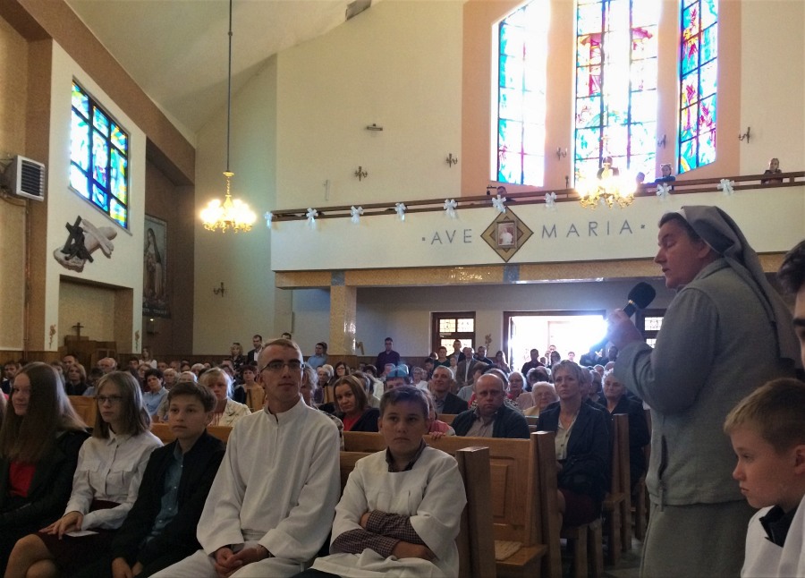 W niedzielę, 15 września, wraz z inną urszulanką włączyły się w życie parafii. W czasie każdej mszy świętej siostry odpowiadały za oprawę liturgiczną i wprowadzały wiernych w klimat peruwiański, ucząc prostych pieśni w języku hiszpańskim. S. Barbara prezentowała również zdjęcia i dzieliła się radościami i trudnościami pracy wśród Peruwiańczyków. Mówiła przede wszystkim o jej doświadczeniu pracy wśród najuboższych ludzi, którzy żyją w slumsach w Pachacutek. Po jednej z mszy była też okazja do spotkania się z młodzieżą, przygotowującą się do Sakramentu Bierzmowania.