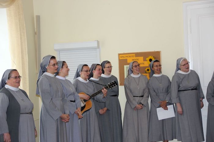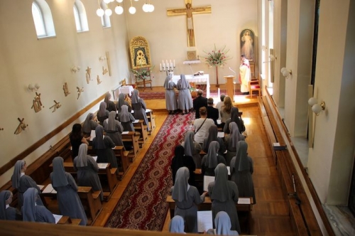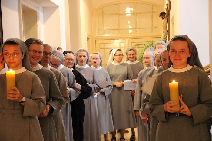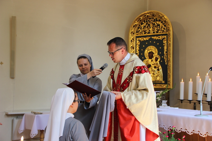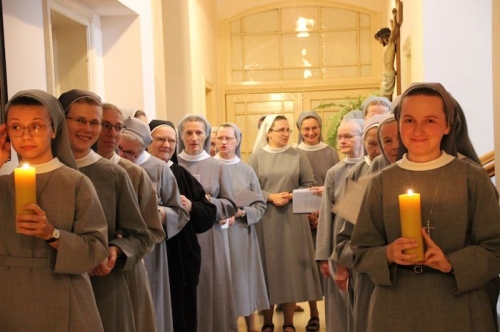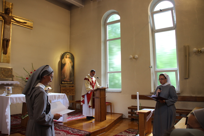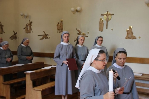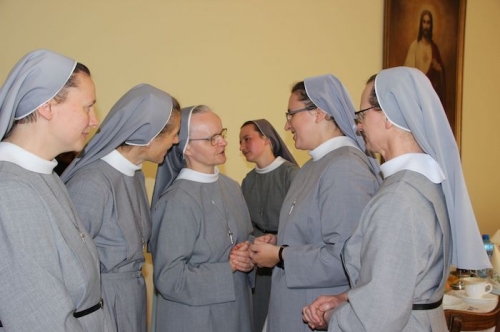 W czasie celebracji, po odczytaniu Ewangelii o Jezusie- prawdziwym krzewie winnym (J 15), s. Anna zadeklarowała gotowość służenia Chrystusowi i Jego Kościołowi w naszym Zakonie i złożyła na ręce Przełożonej Prowincjalnej, s. Benigny Kani OSU, pierwsze śluby zakonne na trzy lata, rozpoczynając tym samym nowy etap formacji, zwany junioratem. Po Mszy Świętej wszyscy obecni mieli okazję do złożenia neoprofesce gratulacji i życzeń, po których zasiedliśmy do świątecznego obiadu. W dalszym ciągu uroczystości spotkaliśmy się znów przed Jezusem Eucharystycznym, uwielbiając Go w tajemnicy Bożego Miłosierdzia i odmawiając wspólnie Koronkę. Po południu czekał na nas jeszcze słodki podwieczorek i niekończące się rozmowy przy stole, a najwytrwalsi goście zostali z nami także na Nieszpory i kolację. Dzień obfitował w radość i wiele pozytywnych przeżyć oraz spotkań. Dla każdej z nas była to także piękna okazja do odnowienia w sercu naszego ‘tak’ wypowiedzianego Jezusowi.
