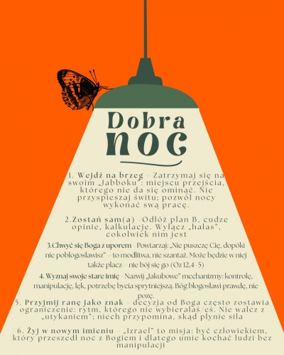 Może dziś powtarzasz w sercu: „Nie puszczę Cię, dopóki mnie nie pobłogosławisz”. To dobra modlitwa na noc. Pozwól, by On dotknął miejsc, które chcesz ukryć. Nie bój się, jeśli po tej walce pójdziesz wolniej. Pójdziesz jako ktoś nowy: człowiek, który widział Oblicze i ocalał.