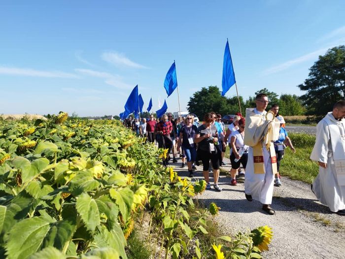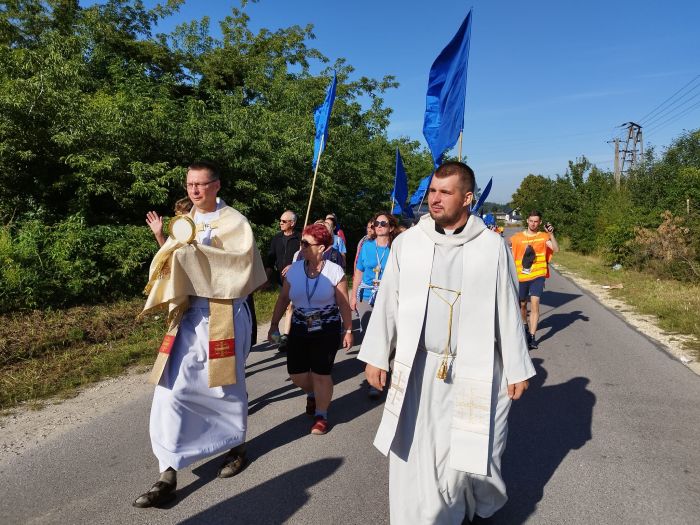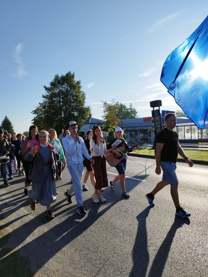Pan Bóg sam poukładał wydarzenia i spotkania z ludźmi, w konsekwencji 10 sierpnia wyruszyłyśmy z s. Natalią Zdunek na pielgrzymi szlak. Wszystko działo się tak szybko, że nie byłyśmy przygotowane na pielgrzymowanie z błogosławioną Klemensą. W bardzo krótkim czasie, dzięki pomocnym ludziom, zrobiłyśmy proporzec z wizerunkiem naszej błogosławionej. Pan w OBI pomógł nam wybrać tworzywo, żeby nie było za ciężkie do niesienia, a my przy okazji, mając przy sobie obraz siostry Klemensy, opowiedziałyśmy mu krótko historię jej życia. I tu zaczęło się już nasze pielgrzymowanie z błogosławioną.