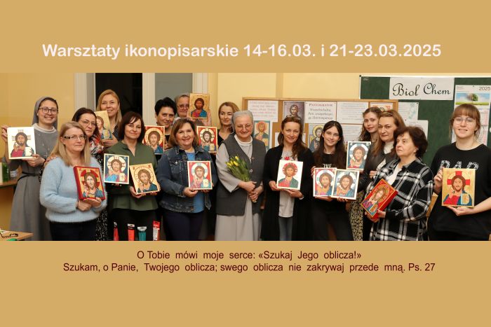 Warsztaty prowadziła s. Daria Klich. W programie znalazły się podstawy teologii ikony oraz modlitwa ikoną. Te dni były swoistego rodzaju kontemplacją Bożego Oblicza z pędzlem w ręku, ponieważ każda z uczestniczek pisała własną ikonę Chrystusa Pantokratora. Dla wszystkich było to duchowe przeżycie wielkopostne, wymagające cierpliwości, wytrwałości, wyciszenia, modlitwy. W tym trudzie wyłaniała się ikona Chrystusa. Doświadczyłyśmy, że życie jest jak pisanie ikony.