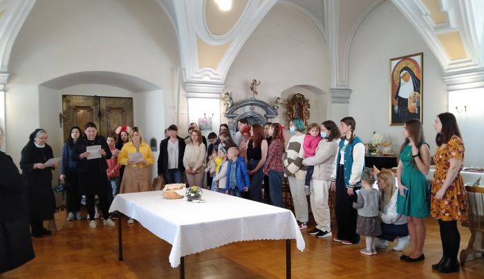 Dzień Zmartwychwstania Pańskiego był dla nas wyjątkowo radosny, ponieważ gościłyśmy na obiedzie ukraińskie rodziny, które znalazły schronienie w naszym wrocławskim klasztorze. Liczna - 30 osobowa - grupa zasiadła z nami do stołu, aby wspólnie świętować i cieszyć się, że Chrystus zmartwychwstał, że żyje i jest obecny pośród nas.