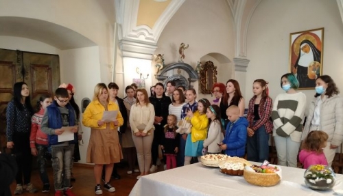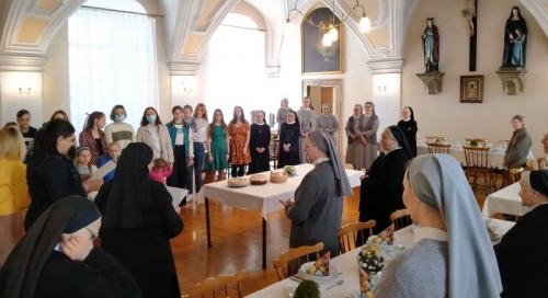 Ten wspólny posiłek miał wyjątkowy charakter - zbliżył nas do siebie, pozwolił nam wzajemnie się poznać i ucieszyć się sobą. Wyjątkowo wzruszający był występ przygotowany, specjalnie dla sióstr, przez naszych ukraińskich gości. Jako wyraz wdzięczności za to, że mogą razem z nami mieszkać zaśpiewali piosenki w swoim narodowym języku. Serca sióstr skradły spontaniczne występy najmłodszych artystek (dziewczynek w wieku ok. 2,5 lat), które wykonywały taneczne ruchy do każdej piosenki. Przez chwilę mogliśmy wszyscy zapomnieć o smutku i troskach, jakie towarzyszą na nam co dzień, zwłaszcza w kontekście toczącej się na Ukrainie wojny i dać się opanować radości. Wspólny obiad ujawnił, że nasze serca wypełnione są dobrocią, miłością