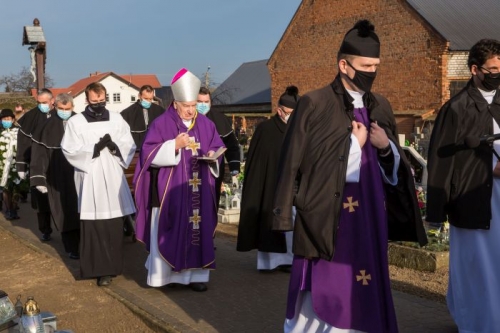 Następnego dnia odbyły się uroczystości pogrzebowe w rodzinnej miejscowości Zmarłego, w Bukówcu Górnym, w parafii pw. św. Marcina Biskupa. Pomimo panującej pandemii, przybyło wielu kapłanów, liczna rodzina, Bukówczanie, przyjaciele i absolwenci oraz my, urszulanki z Poznania i Wrocławia, aby pożegnać naszego Księdza Kapelana i podziękować Bogu za 76 lat jego życia oddanego Bogu i drugiemu człowiekowi. Uroczystość była wzruszająca, pełna pokoju oraz przeniknięta wdzięcznością za życie Księdza. Eucharystii przewodniczył ks. Biskup Zdzisław Fortuniak, a homilię wygłosił kolega kursowy ks. Bogdana, ks. Edward Majka.