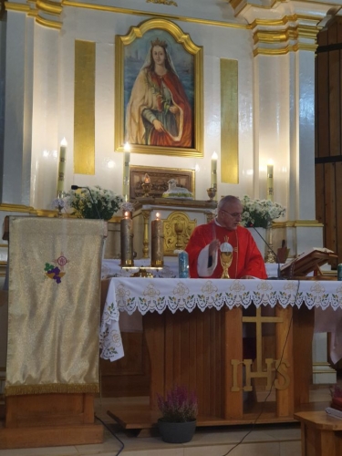 Ks. Proboszcz Tadeusz Pietrzyk odprawił Mszę wotywną ku czci św. Urszuli, a po niej zaprosił nas w gościnę do domu parafialnego.